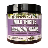Milk thistle is often used as a supplement for dogs and cats due to its potential health benefits, particularly for liver support. It is commonly used to support liver health and may help with conditions such as hepatitis, liver cirrhosis, and liver damage caused by toxins or medications. Milk thistle may also aid in detoxification by promoting liver cell regeneration and enhancing the liver's ability to remove toxins from the body. Silymarin, the active ingredient in milk thistle, may have anti-inflammatory effects, which could benefit pets with inflammatory conditions or diseases. The antioxidants in milk thistle may help combat free radicals in the body, potentially reducing oxidative stress and supporting overall health. We packaged it in a recyclable jar with a 1/4 teaspoon for easy serving.