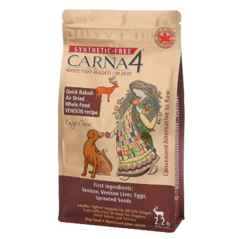 Ideal daily feeding portions will vary for different dogs, depending on age, size, breed, environment and activity levels. Because Carna4 is so concentrated in high quality nutrients that are easily absorbed by your dog, you will need to feed 15% to 25% fewer cups per day than most other dry foods. The amounts shown below are guidelines only and you should carefully monitor your dog’s weight, until an ideal balance is found: