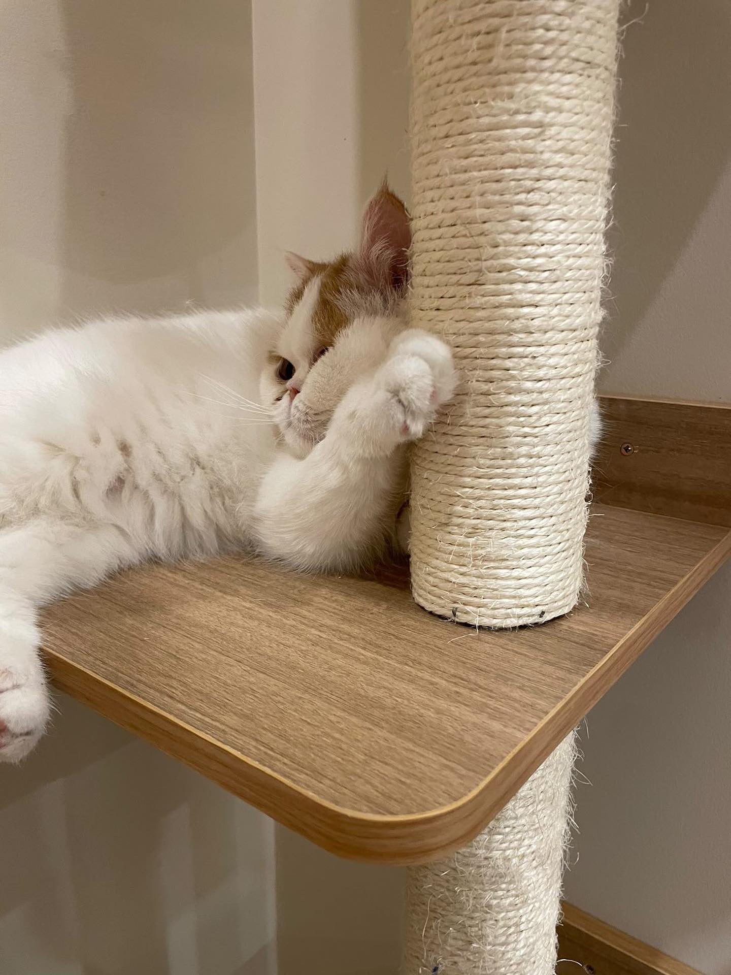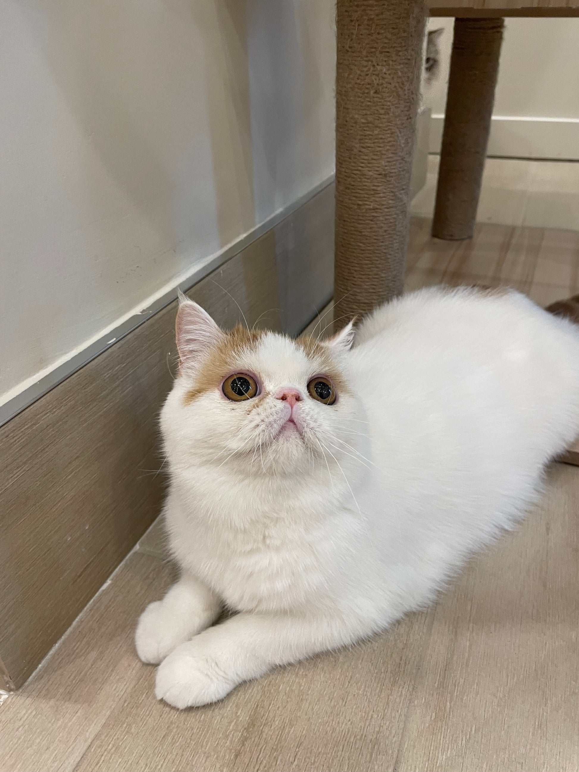 Bubu’s fiancée. A bit shy and skittish, her favorite toy is the laser pointer. Don’t be surprised if she block the door of safety zone when other cats are trying to get out.