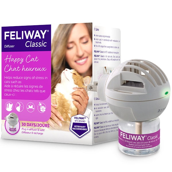 FELIWAY CLASSIC is the original cat pheromone diffuser, clinically proven to help comfort and reassure your cat at home. It works by mimicking calming messages that cats naturally release in the air called pheromones. These messages help cats and kittens adjust to changes in their environment, feel comfortable in a new home and avoid unwanted behaviours like urine spraying, scratching and hiding. Trusted by veterinarians and pet owners worldwide for over 25 years, more than 14 million cats have benefitted from FELIWAY cat pheromone products.