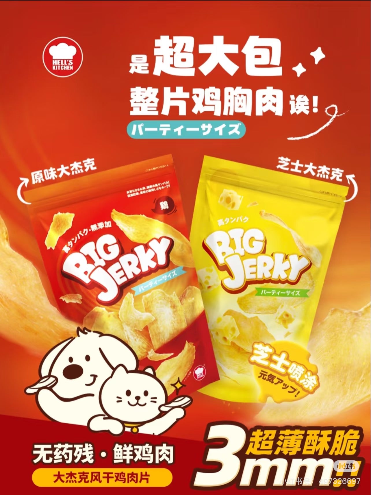 HELL'S KITCHEN Cat&Dog Chicken Air Dried Big Jerky Treat