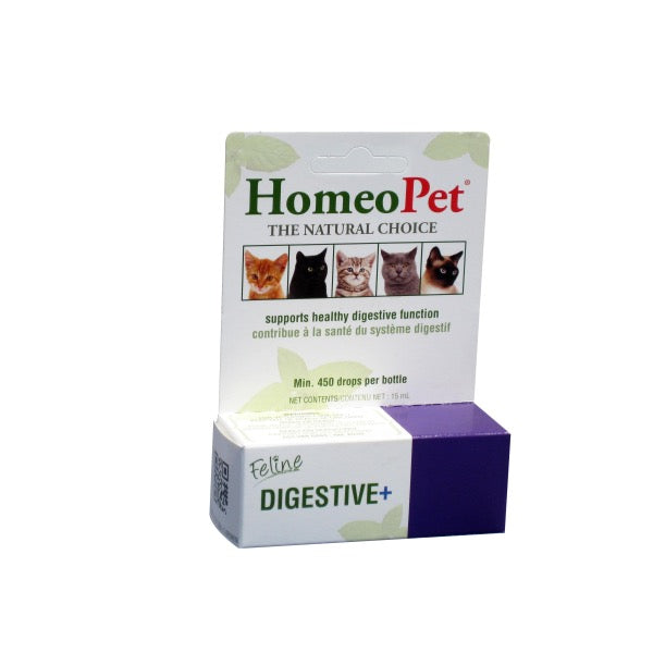 The HomeoPet Feline Digestive+ helps support healthy digestive function.