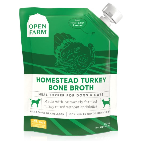Open Farm Dog/Cat Bone Broth Topper Homestead Turkey 12 oz