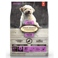 Canadian Brand. Oven-Baked Tradition Grain-Free Duck formula for Small Breed Dogs has been formulated for puppies, adults and senior dogs. This grain-free recipe is prepared with deboned duck and legumes. It features a lower glycemic index and is slowly oven baked in smaller portions.