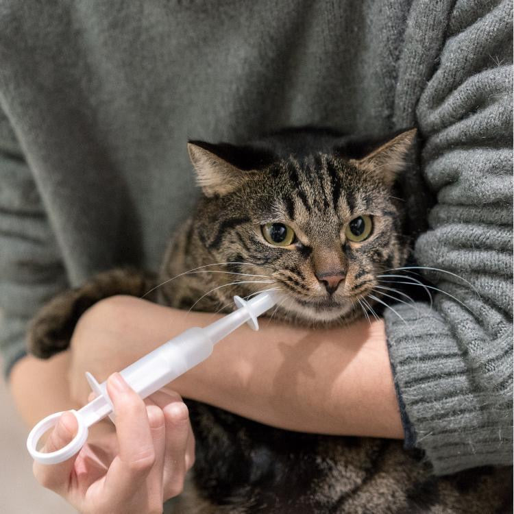 After the syringe holds tight the pill or draws in the liquid, make sure you target the throat or your pet may spit out the medicine.