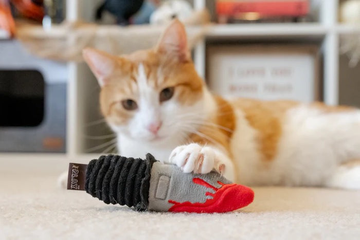 P.L.A.Y.’s Feline Frenzy Deadly Duo Toy Set is the perfect way to keep your cat's killer instincts at bay! Keep your eyes peeled for your cat as they get kitted-up and captivated by the thrill of playtime. Don't be fooled by their appearance; they may look dangerous, but they're only packed with pure feline delight with refillable pouches of USDA Organic Catnip.