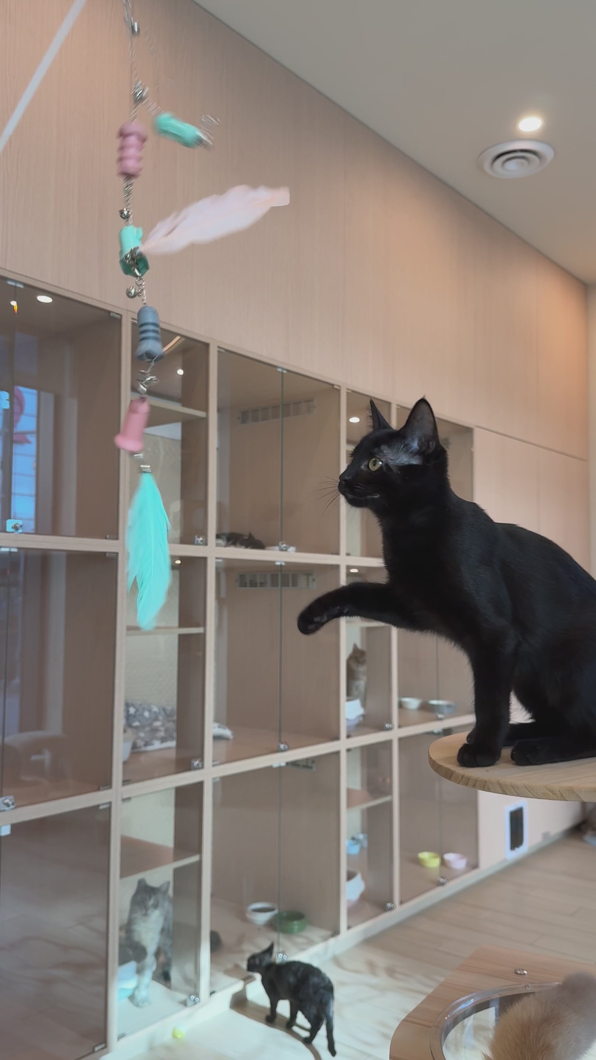 Shane is a beautiful black panther who is the perfect combination of sweet and silly. He demands your attention and is an affectionate and quiet little kitten. He loves to play and will leap through the air to catch his toys. He is a curious boy who will explore every nook and cranny and look for new friends. Good with cats and children.