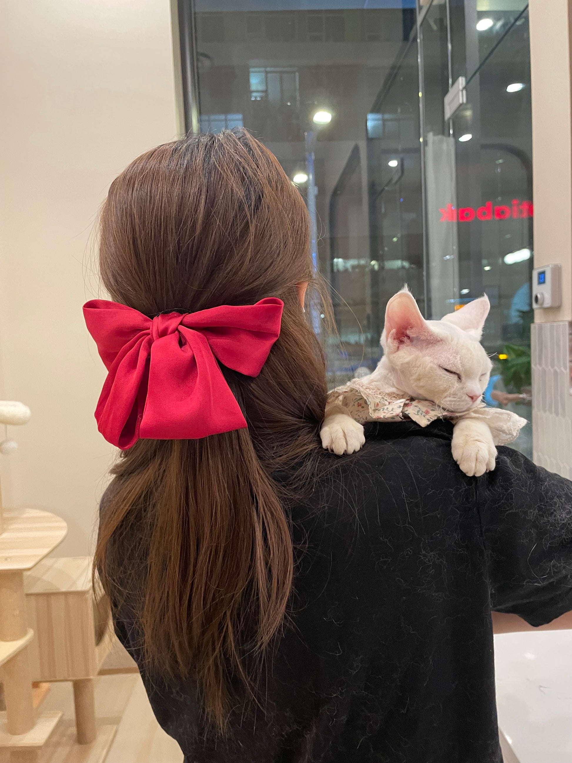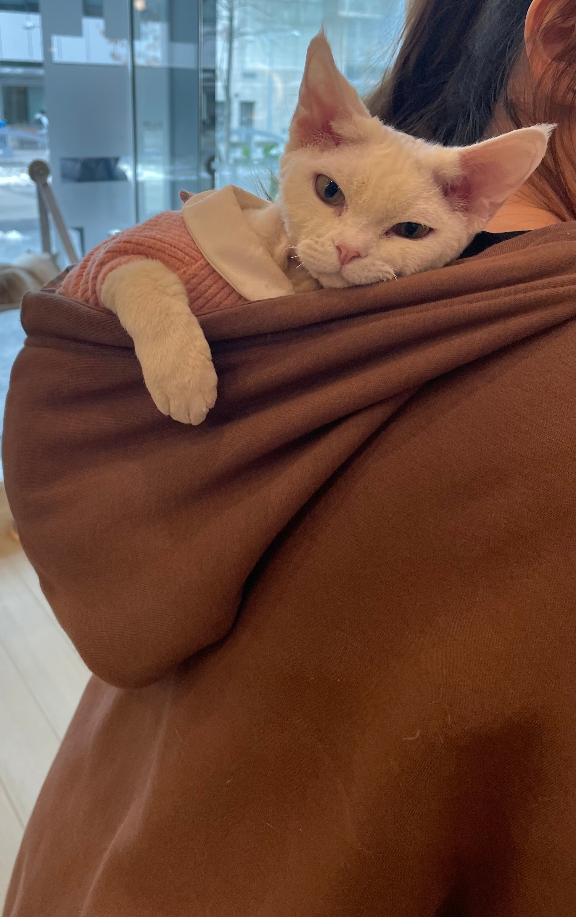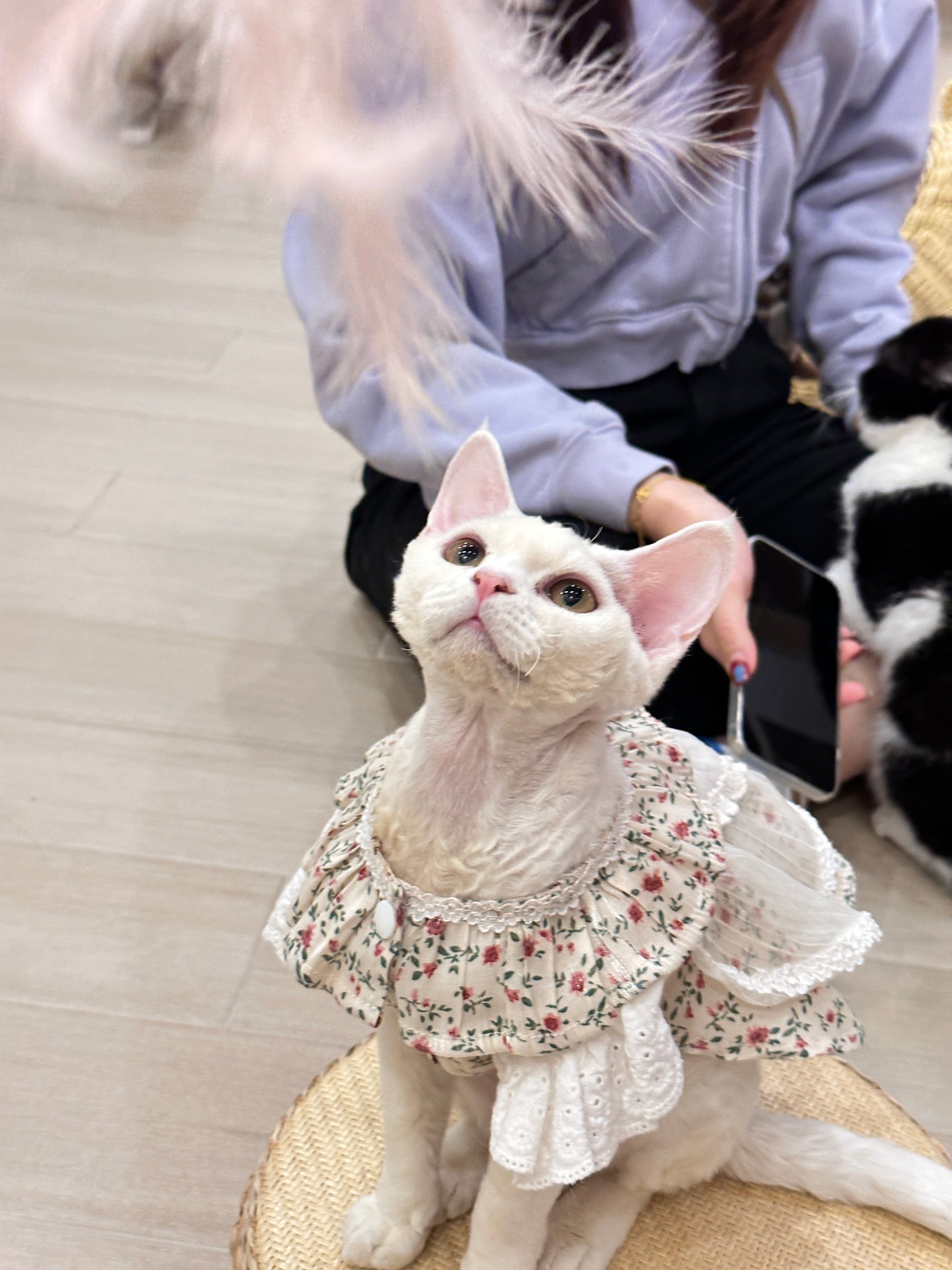 Soy Milk is very sweet, like to climb on people’s shoulders. She always “Meow” to catch attention from everyone.