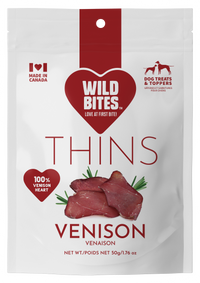 Thinly sliced, crispy and easy to break with your fingers, our venison THINS are high in protein and packed with nutrients like iron, zinc, thiamine, folate, selenium, phosphorus and several B vitamins.  This nutrient powerhouse is a perfect wholesome treat or topper to add to your pet's diet!