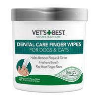 Vet's Best Dental Care Finger Wipes for Dogs & Cats provide an effective way to clean your pet's teeth and maintain good oral hygiene. Regular use of Vet's Best Dental Care Finger Wipes will help in reducing plaque build-up and promote fresh breath. This specially designed wipe allows the pet owner to be guided by their own touch when cleaning their pet's teeth. Vet's Best wipes are made with natural ingredients like Thyme Oil and Green Tea Extract.